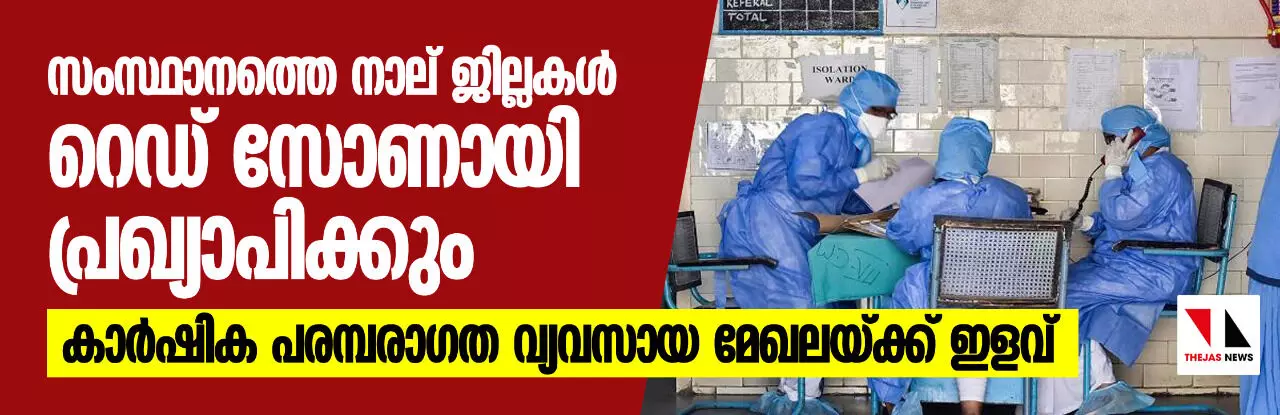 സംസ്ഥാനത്തെ നാല് ജില്ലകൾ റെഡ് സോണായി പ്രഖ്യാപിക്കും; കാർഷിക പരമ്പരാഗത മേഖലയ്ക്ക് ഇളവ്