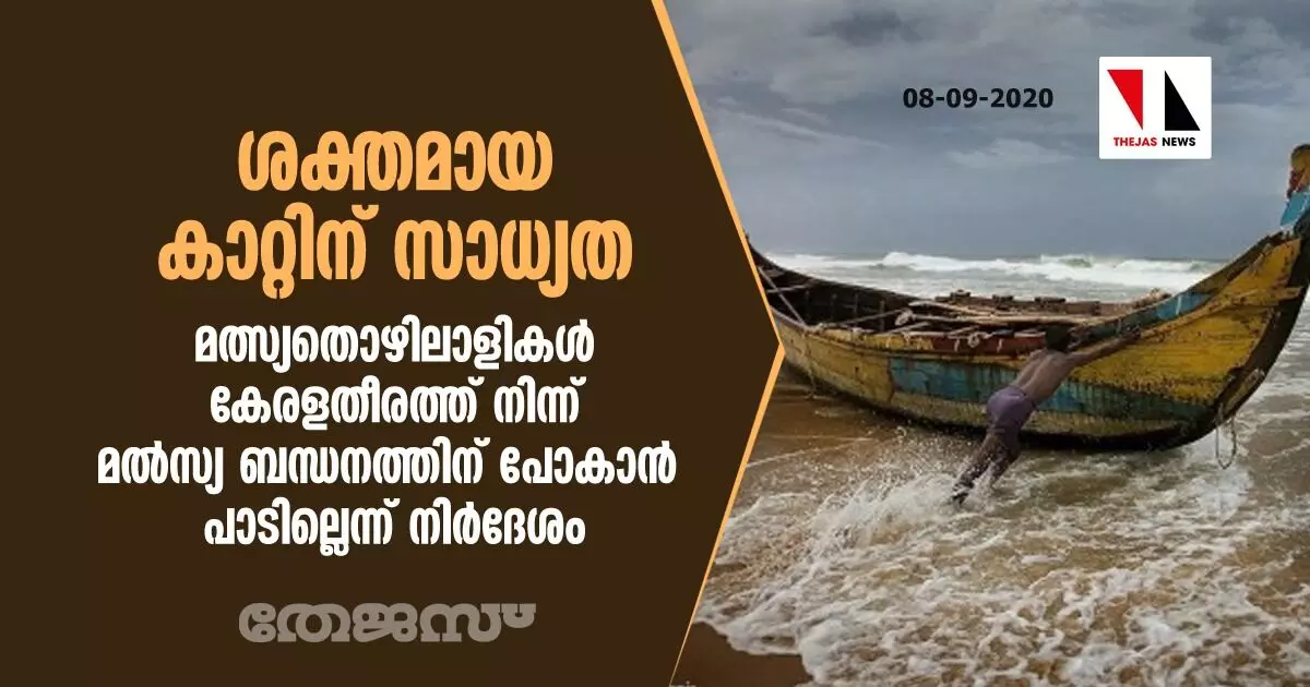 ശക്തമായ കാറ്റിന് സാധ്യത;മല്സ്യതൊഴിലാളികള് കേരളതീരത്ത് നിന്ന് മല്സ്യ ബന്ധനത്തിന് പോകാന് പാടില്ലെന്ന് നിര്ദേശം