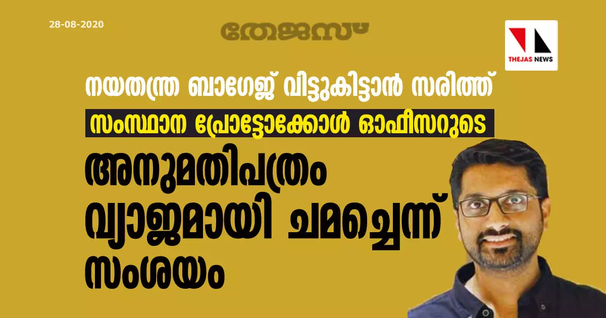 നയതന്ത്ര ബാഗേജ് വിട്ടുകിട്ടാൻ സരിത്ത് സംസ്ഥാന പ്രോട്ടോക്കോള് ഓഫീസറുടെ അനുമതിപത്രം വ്യാജമായി ചമച്ചെന്ന് സംശയം