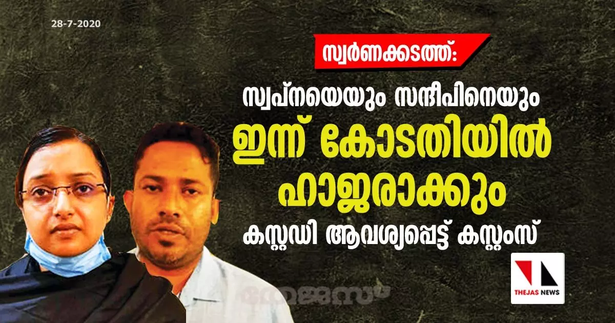 സ്വര്ണക്കടത്ത്: സ്വപ്നയെയും സന്ദീപിനെയും ഇന്ന് കോടതിയില് ഹാജരാക്കും; കസ്റ്റഡി ആവശ്യപ്പെട്ട് കസ്റ്റംസ്