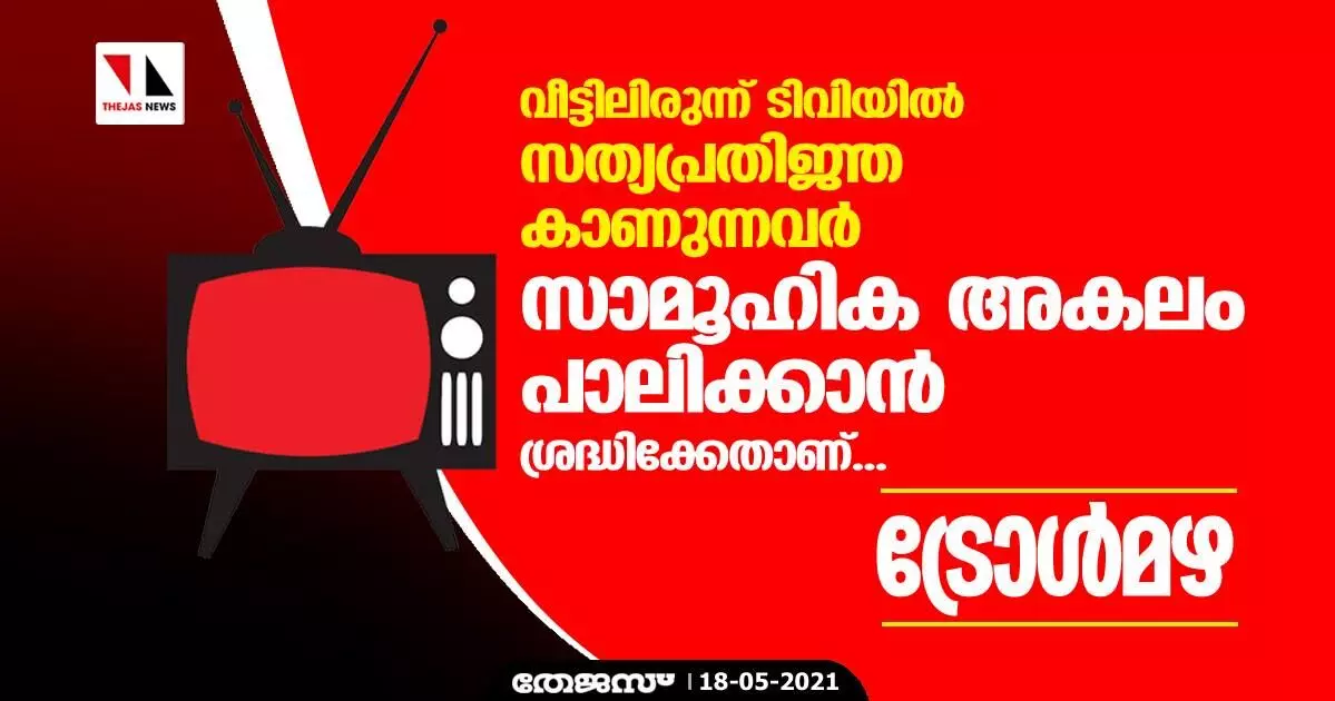 വീട്ടിലിരുന്ന് ടിവിയിൽ സത്യപ്രതിജ്ഞ കാണുന്നവർ സാമൂഹിക അകലം പാലിക്കാൻ ശ്രദ്ധിക്കേണ്ടതാണ്... ട്രോൾമഴ