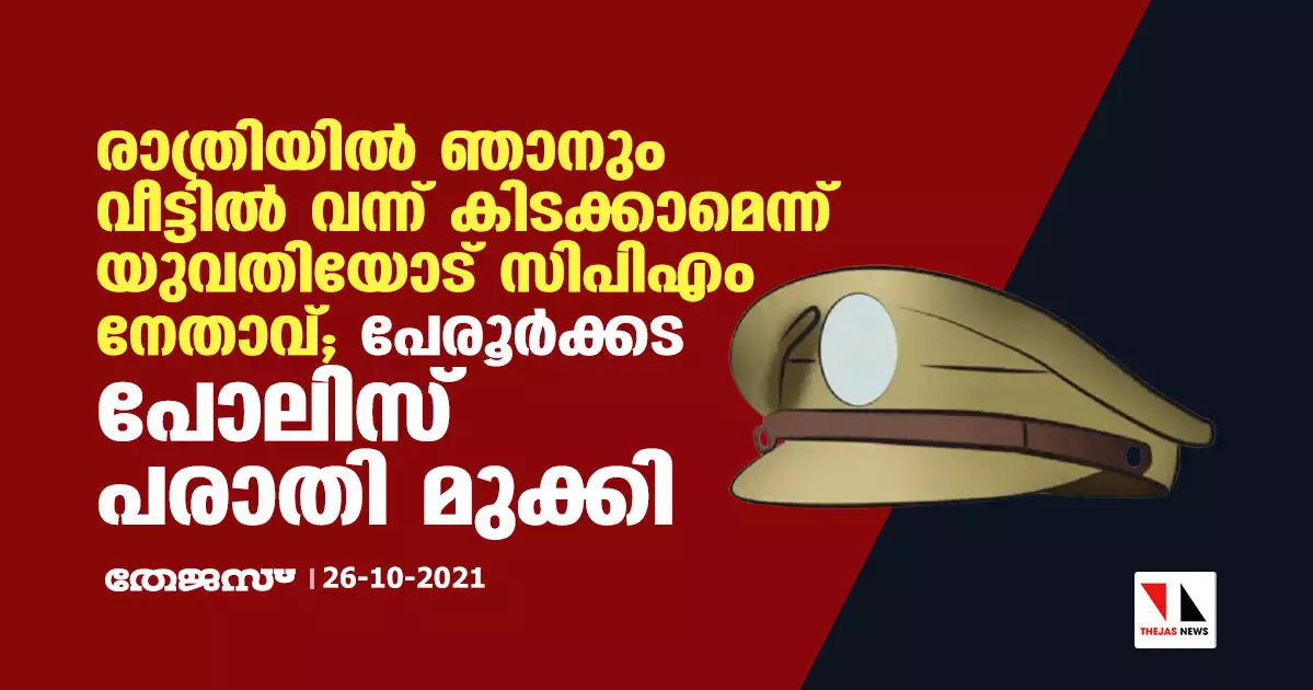 രാത്രിയിൽ ഞാനും വീട്ടിൽ വന്ന് കിടക്കാമെന്ന് യുവതിയോട് സിപിഎം നേതാവ്; പേരൂർക്കട പോലിസ് പരാതി മുക്കി