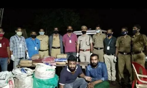 വയനാട്, കൊല്ലം സ്വദേശികളാണ് കസ്റ്റഡിയിലുള്ളത്. ഒരുകോടിയോളം വിലമതിക്കുന്ന കഞ്ചാവാണ് പിടികൂടിയത്.