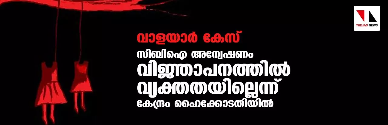 വാളയാര് കേസ്: സിബി ഐ അന്വേഷണം വിജ്ഞാപനത്തില് വ്യക്തതയില്ലെന്ന് കേന്ദ്രം ഹൈക്കോടതിയില്