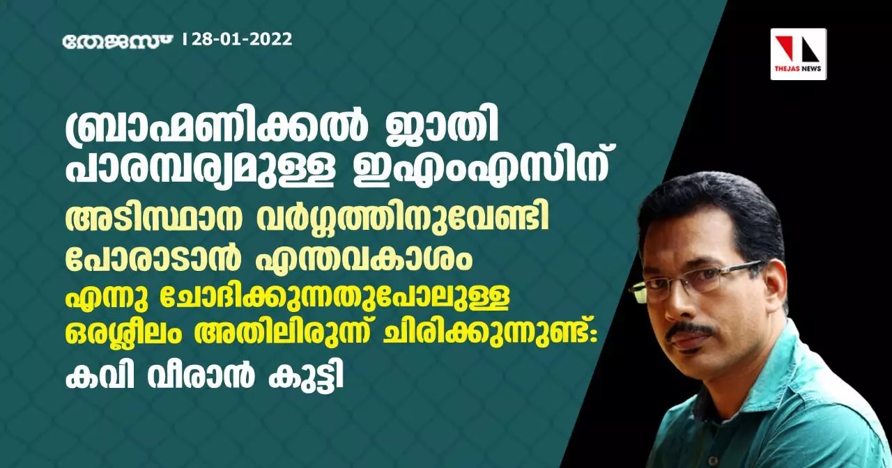 ബ്രാഹ്മണിക്കൽ ജാതി പാരമ്പര്യമുള്ള ഇഎംഎസിന് അടിസ്ഥാന വർഗ്ഗത്തിനുവേണ്ടി പോരാടാൻ എന്തവകാശം എന്നു ചോദിക്കുന്നതുപോലുള്ള ഒരശ്ലീലം അതിലിരുന്ന് ചിരിക്കുന്നുണ്ട്: കവി വീരാൻ കുട്ടി
