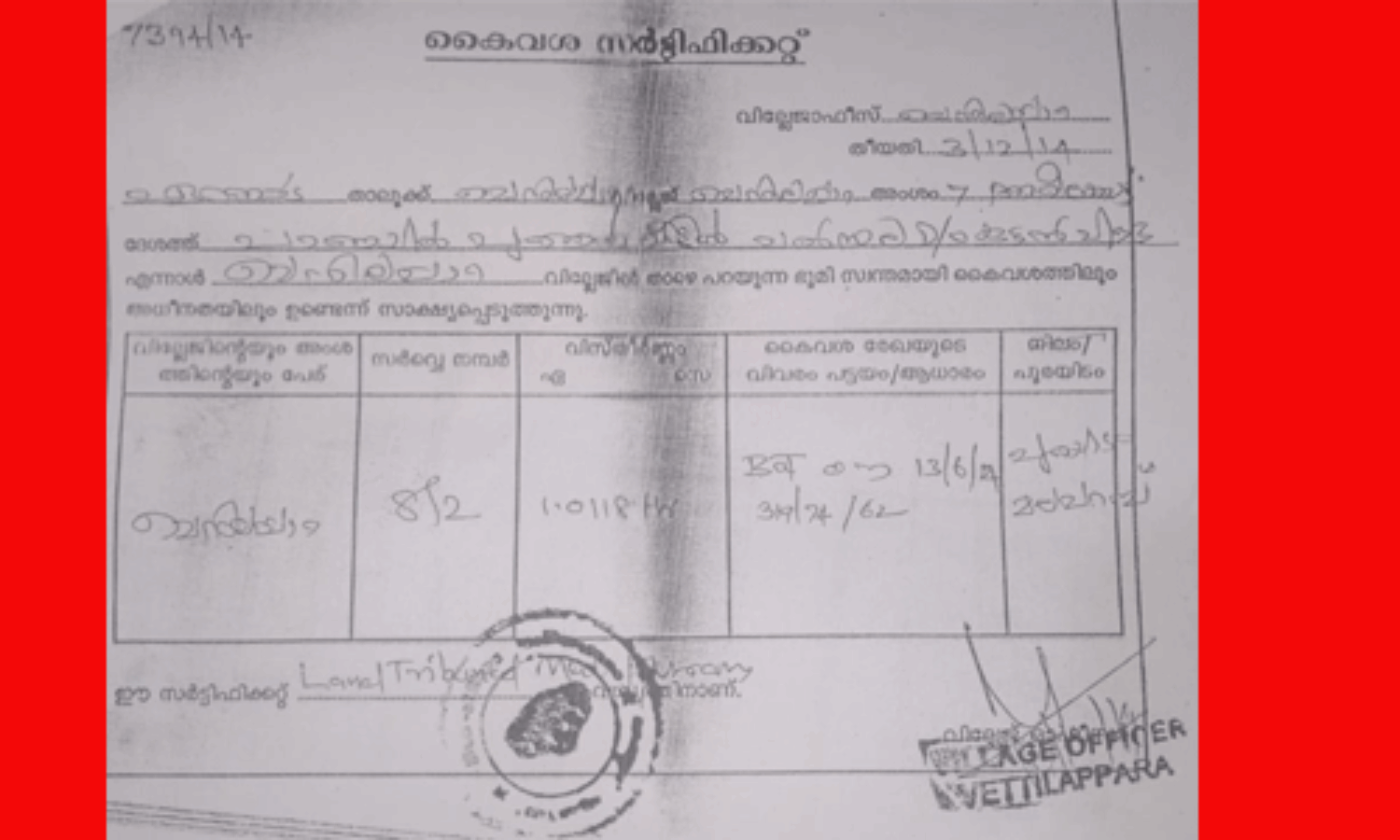 വെറ്റിലപ്പാറ വില്ലേജില് വ്യാജ പട്ടയം വ്യാപകം; പിന്നില് രാഷ്ട്രീയ-ഉദ്യോഗസ്ഥ കൂട്ടുകെട്ടെന്ന് ആരോപണം