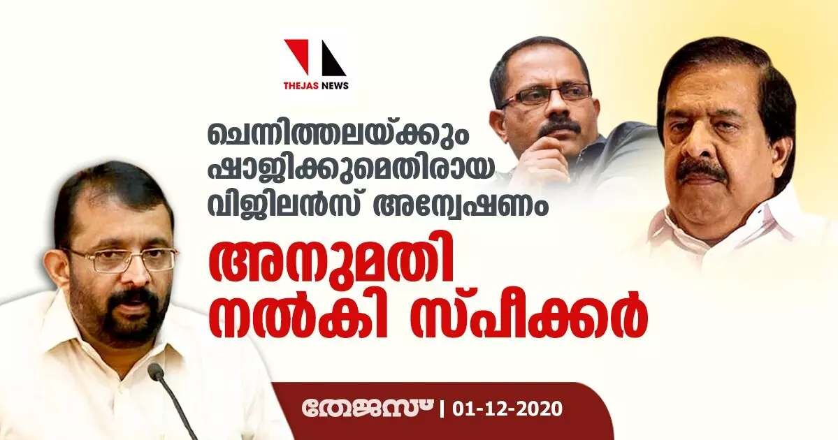 ചെന്നിത്തലയ്ക്കും ഷാജിക്കുമെതിരായ വിജിലന്സ് അന്വേഷണം; അനുമതി നല്കി സ്പീക്കര്