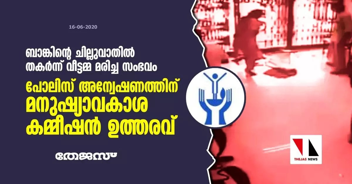 ബാങ്കിന്റെ ചില്ലുവാതില് തകര്ന്ന് വീട്ടമ്മ മരിച്ച സംഭവം: പോലിസ് അന്വേഷണത്തിന് മനുഷ്യാവകാശ കമ്മീഷന് ഉത്തരവ്