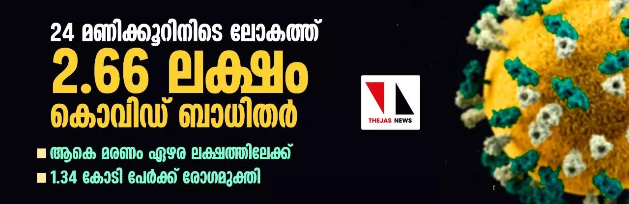 24 മണിക്കൂറിനിടെ ലോകത്ത് 2.66 ലക്ഷം കൊവിഡ് ബാധിതര്; ആകെ മരണം ഏഴരലക്ഷത്തിലേക്ക്, 1.34 കോടി പേര്ക്ക് രോഗമുക്തി