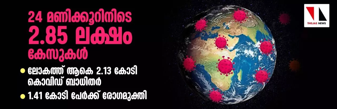 24 മണിക്കൂറിനിടെ 2.85 ലക്ഷം കേസുകള്; ലോകത്ത് ആകെ 2.13 കോടി കൊവിഡ് ബാധിതര്, 1.41 കോടി പേര്ക്ക് രോഗമുക്തി