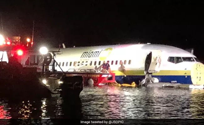 ഗ്വണ്ടാനമോ ബേയില് നിന്ന് വന്ന വിമാനം റണ്വേയുടെ അറ്റത്ത് വച്ച് പ്രാദേശിക സമയം 9.40ാേടെയാണ് നദിയിലേക്കു പതിച്ചത്. വിമാനത്തിലെ യാത്രക്കാര് മുഴുവന് സുരക്ഷിതരാണെന്നും വെള്ളത്തിലേക്ക് ഒലിച്ചിറങ്ങിയ വിമാന ഇന്ധനം നീക്കം ചെയ്യാനുള്ള ശ്രമത്തിലാണെന്നും ജാക്ക്സണ്വില്ലെ മേയര് അറിയിച്ചു. വിമാനം പൂര്ണമായും മുങ്ങിയില്ല. യാത്രക്കാര് മുഴുവന് ജീവനോടെയുണ്ട്. ആരെയും കാണാതായിട്ടില്ല-ജാക്ക്സണ്വില്ലെ പോലിസ് അറിയിച്ചു. മിയാമി എയര് ഇന്റര്നാഷനലിന്റെ ലോഗോയോട് കൂടിയ വിമാനം വെള്ളത്തില് ഭാഗിമായി മുങ്ങിനില്ക്കുന്ന ചിത്രവും പോലിസ് പുറത്തുവിട്ടു.