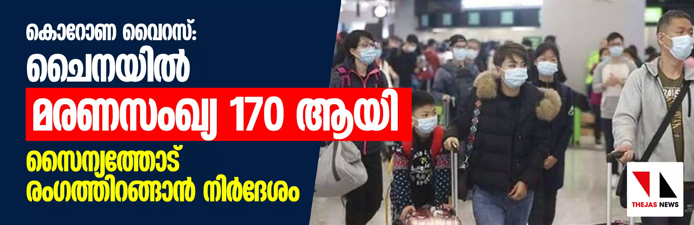 കൊറോണ വൈറസ്: ചൈനയില് മരണസംഖ്യ 170 ആയി; സൈന്യത്തോട് രംഗത്തിറങ്ങാന് നിര്ദേശം
