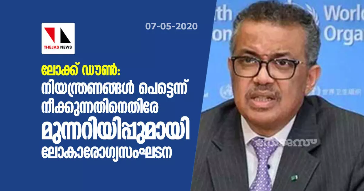 ലോക്ക് ഡൗണ്: നിയന്ത്രണങ്ങള് പെട്ടെന്ന് നീക്കുന്നതിനെതിരേ മുന്നറിയിപ്പുമായി ലോകാരോഗ്യസംഘടന
