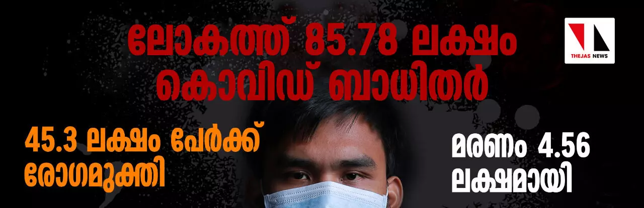 ലോകത്ത് 85.78 ലക്ഷം കൊവിഡ് ബാധിതര്; 45.3 ലക്ഷം പേര്ക്ക് രോഗമുക്തി, മരണം 4.56 ലക്ഷമായി