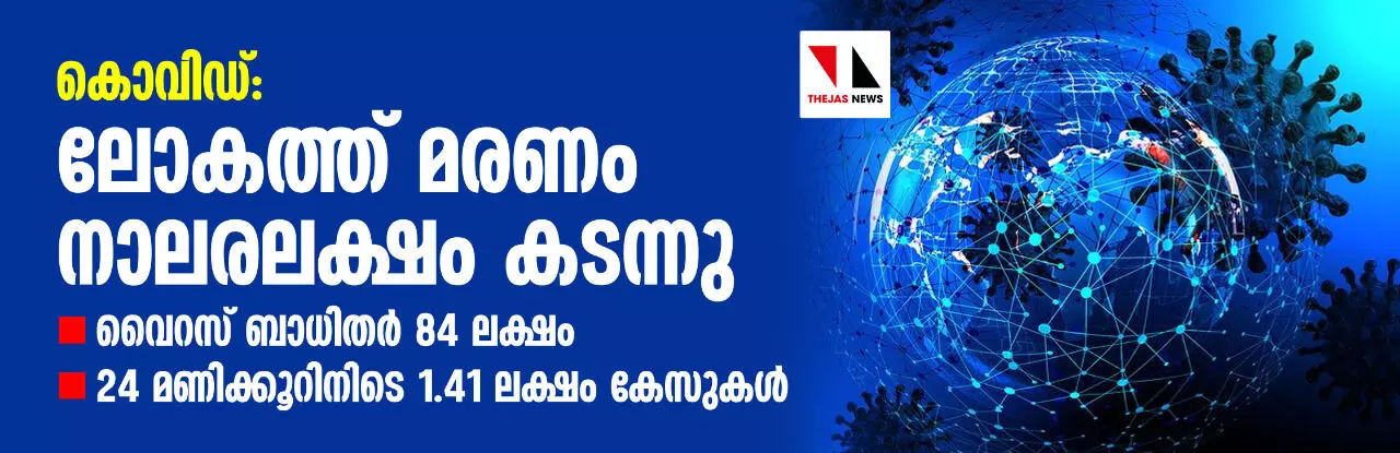 കൊവിഡ്: ലോകത്ത് മരണം നാലരലക്ഷം കടന്നു; വൈറസ് ബാധിതര് 84 ലക്ഷം, 24 മണിക്കൂറിനിടെ 1.41 ലക്ഷം കേസുകള്