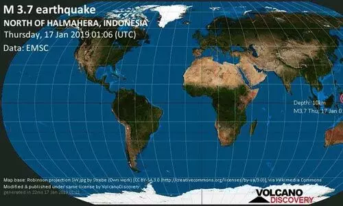 റിക്ടര് സ്കെയിലില് 3.7 തീവ്രത രേഖപ്പടുത്തിയ ഭൂചലനമാണ് വടക്കന് ഹല്മഹ്ര പ്രദേശത്തുണ്ടായത്.