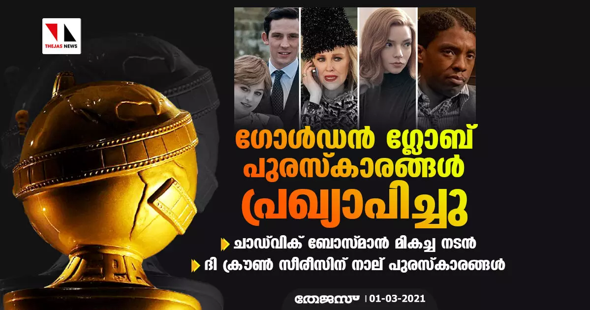 ഗോള്ഡന് ഗ്ലോബ് പുരസ്കാരങ്ങള് പ്രഖ്യാപിച്ചു; ചാഡ്വിക് ബോസ്മാന് മികച്ച നടന്, ദി ക്രൗണ് സീരീസിന് നാല് പുരസ്കാരങ്ങള്