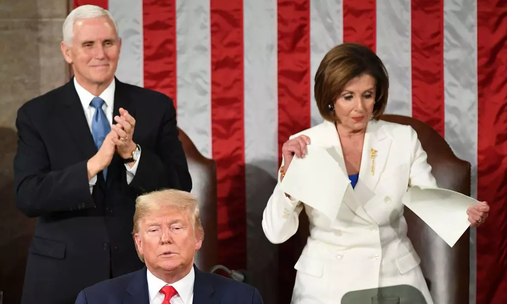 സ്റ്റേറ്റ് ഓഫ് യൂനിയന് പ്രസംഗത്തിന് സെനറ്റിലെത്തിയ ട്രംപില് നിന്ന് പ്രസംഗത്തിന്റെ പകര്പ്പ് സ്വീകരിച്ച ശേഷം അഭിവാദ്യം ചെയ്യാനായി നാന്സി കൈ നീട്ടി. എന്നാല് അത് ട്രംപ് നിരസിക്കുകയായിരുന്നു.