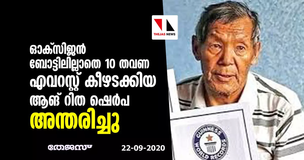 ഓക്സിജന് ബോട്ടിലില്ലാതെ 10 തവണ എവറസ്റ്റ് കീഴടക്കിയ ആങ് റിത ഷെര്പ അന്തരിച്ചു