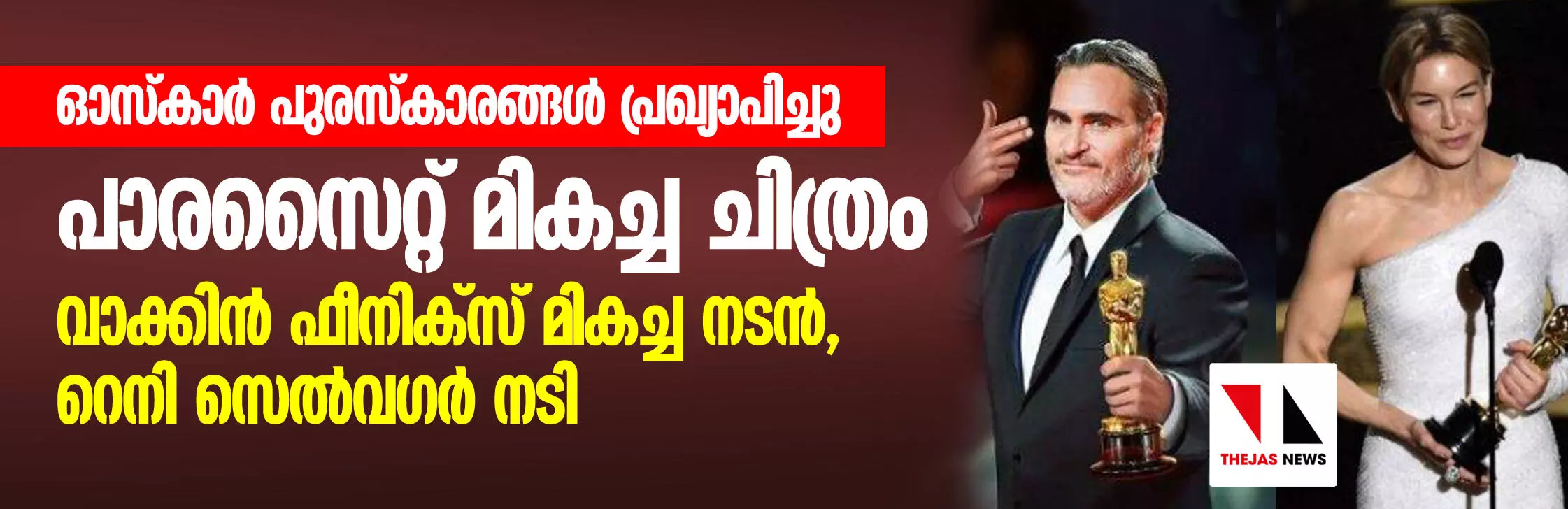 ഓസ്കാര് പുരസ്കാരങ്ങള് പ്രഖ്യാപിച്ചു; പാരസൈറ്റ് മികച്ച ചിത്രം, വാക്കിന് ഫീനിക്സ് മികച്ച നടന്, റെനി സെല്വഗര് നടി