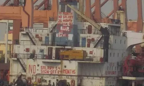 9 മാസം മുമ്പ് കുവൈത്തിലേക്ക് ചരക്കുമായെത്തിയതായിരുന്നു കപ്പല്. കപ്പല് ഉടമയും ചരക്ക് ഉടമയും തമ്മിലുള്ള നിയമപരമായ തര്ക്കത്തെത്തുടര്ന്നാണു 16 ഓളം ഇന്ത്യന് നാവികര് കുവൈത്തില് കുടുങ്ങിക്കിടക്കാന് ഇടയായത്. ഷുഐബ തുറമുഖത്താണു കപ്പല് നങ്കൂരമിട്ടത്.