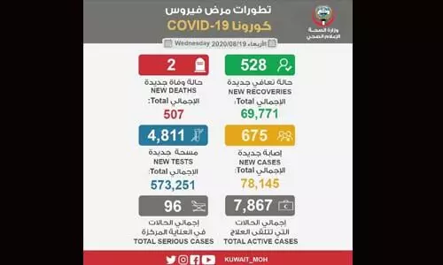 കൊവിഡ്: കുവൈത്തില് ഇന്ന് രണ്ടുമരണം; 675 പേര്ക്ക് വൈറസ് ബാധ