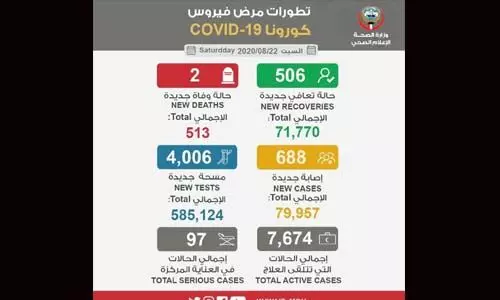 കൊവിഡ്: കുവൈത്തില് ഇന്ന് രണ്ടുമരണം കൂടി; 688 പേര്ക്ക് വൈറസ് ബാധ