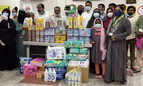 വിവിധ പ്രായത്തിലുള്ള കുഞ്ഞുങ്ങള്ക്ക് ബേബി ഫുഡ് കിട്ടാതെ ബുദ്ധിമുട്ടുന്ന ദയനീയാവസ്ഥ കണ്ട നവോദയ വെല്ഫെയര് നേതൃത്വം ഇടപെട്ടാണ് കുഞ്ഞുങ്ങള്ക്ക് ഭക്ഷണവും സ്ത്രീകള്ക്കും കുഞ്ഞുങ്ങള്ക്കും ആവശ്യമായ നിത്യോപയോഗ സാധനങ്ങളും നല്കിയത്. നവോദയ കേന്ദ്ര സാമൂഹിക ക്ഷേമവിഭാഗം ജോ: കണ്വീനര് ഗഫൂര്, ഉണ്ണി ഗുരുവായൂര്, കുടുംബവേദി നേതാക്കളായ രഞ്ജിത് വടകര, ഹമീദ് നൈന, സുരയ്യ ഹമീദ്, ജോല്സന, ജസ്ന എന്നിവര് നേതൃത്വം നല്കി.