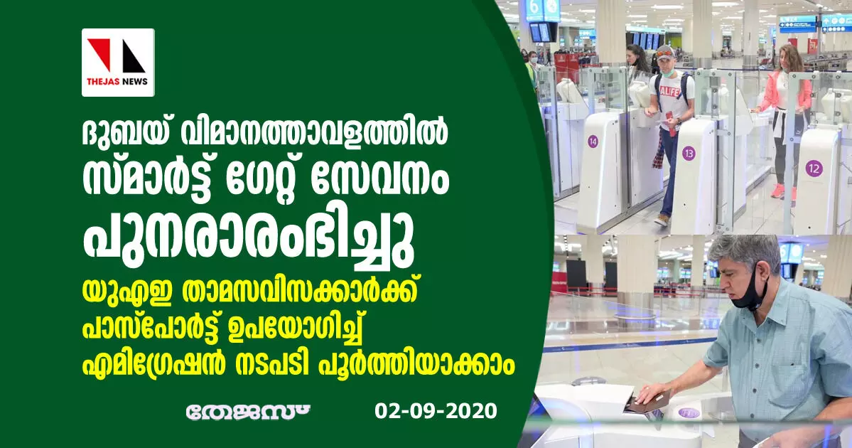 ദുബയ് വിമാനത്താവളത്തില് സ്മാര്ട്ട് ഗേറ്റ് സേവനം പുനരാരംഭിച്ചു; യുഎഇ താമസവിസക്കാര്ക്ക് പാസ്പോര്ട്ട് ഉപയോഗിച്ച് എമിഗ്രേഷന് നടപടി പൂര്ത്തിയാക്കാം