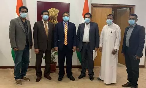 ജലീബിലെ ഡ്രെയ്നേജ്, പാര്ക്കിങ് പ്രശ്നങ്ങള്ക്ക് സ്ഥായിയായ പരിഹാരം കാണണമെന്നും എയിംസ് പ്രതിനിധികള് ചര്ച്ചയില് ആവശ്യപ്പെട്ടു. പ്രശ്നപരിഹാരത്തിന് എംബസി ക്രിയാത്മകമായി ഇടപെടുമെന്ന് അംബാസിഡര് ഉറപ്പുനല്കി. വിവിധ ജനകീയ ആവശ്യങ്ങള് അടങ്ങിയ നിവേദനം സമര്പ്പിച്ച എയിംസ് പ്രതിനിധി സംഘം, പുതുതായി സ്ഥാനമേറ്റ അംബാസിഡറുടെ ജനപ്രിയപരിപാടികള്ക്ക് ആശംസകള് നേര്ന്നു.