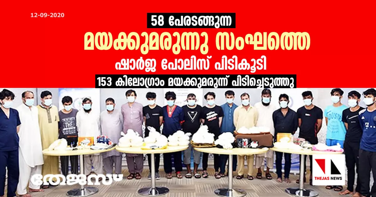 58 പേരടങ്ങുന്ന മയക്കുമരുന്നു സംഘത്തെ ഷാർജ പോലിസ് പിടികൂടി; 153 കിലോഗ്രാം മയക്കുമരുന്ന് പിടിച്ചെടുത്തു