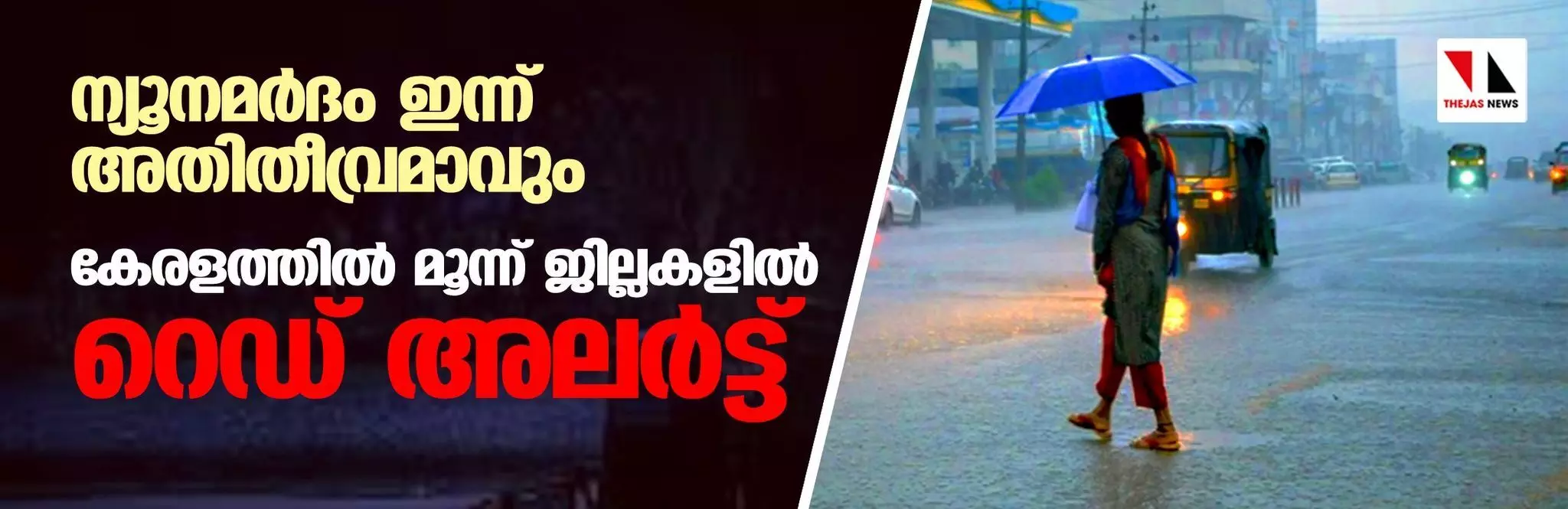 ന്യൂനമര്ദം ഇന്ന് അതിതീവ്രമാവും; കേരളത്തില് മൂന്ന് ജില്ലകളില് റെഡ് അലര്ട്ട്