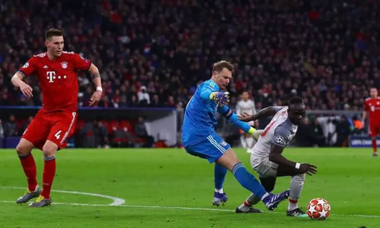 മ്യൂണിക്ക്: ജര്മന് ലീഗ് ജേതാക്കളായ ബയേണ് മ്യൂണിക്കിനെ 3-1ന് തോല്പ്പിച്ച് ലിവര്പൂള് ചാംപ്യന്സ് ലീഗ് ക്വാര്ട്ടറില് പ്രവേശിച്ചു. ഇന്ന് മ്യൂണിക്കില് നടന്ന മല്സരത്തില് മാനേയുടെ ഇരട്ടഗോള്(26, 84) മികവിലാണ് ലിവര്പൂള് അവസാന എട്ടിലെത്തിയത്. ആദ്യപാദത്തില് ഇരുടീമും ഏറ്റുമുട്ടിയപ്പോള് സമനിലയായിരുന്നു ഫലം. ആയതിനാല് ഈ മല്സരത്തില് വിജയം ഇരുടീമിനും നിര്ണായകമായിരുന്നു. മല്സരത്തിലെ വിജയസാധ്യത ബയേണിനായിരുന്നു. എന്നാല് ചിത്രം മാറ്റിമറിക്കുന്ന പ്രകടനമാണ് ലിവര്പൂള് പുറത്തെടുത്തത്. 26ാം മിനിറ്റില് വാന് ഡൈക്ക് നല്കിയ പാസ് മാനെ ബയേണ് ഗോള് കീപ്പര് നൂയറെ കബളിപ്പിച്ച് വലയിലെത്തിക്കുകയായിരുന്നു. 39ാം മിനിറ്റില് ഒരു സെല്ഫ് ഗോളിലൂടെ ബയേണ് ഒപ്പത്തിനൊപ്പമെത്തി. ഗ്നാബിറിയുടെ ഷോട്ട് മാറ്റിപ്പിന്റെ കാലില് തട്ടി ലിവര്പൂള് വലയിലേക്ക് നീങ്ങുകയായിരുന്നു. 69ാം മിനിറ്റില് വാന് ഡെക് കോര്ണറില് നിന്ന് ഒരു ഗോള് കൂടി നേടി. അവസാന ഗോള് 83ാം മിനിറ്റില് ഹെഡറിലൂടെ മാനേയുടെ വകയായിരുന്നു. സ്കോര് 3-1.