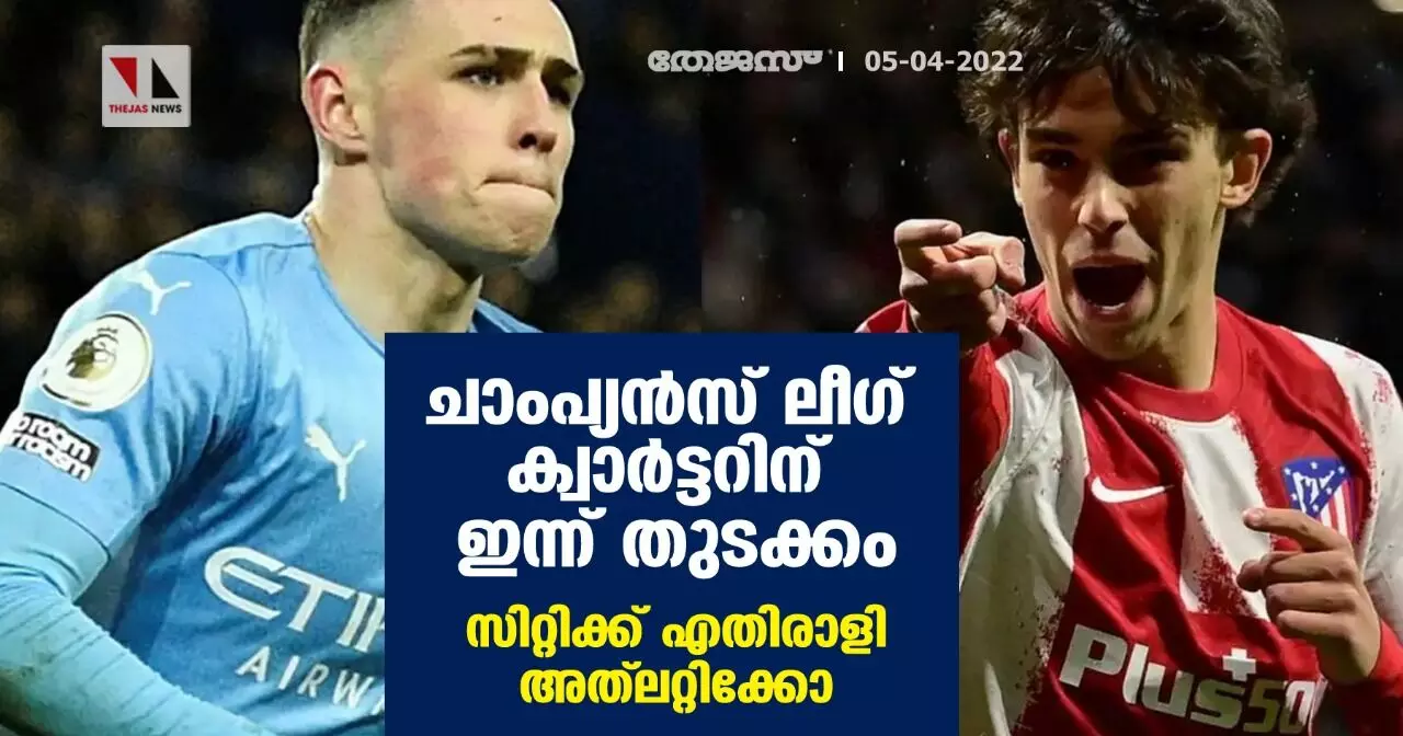 ചാംപ്യന്സ് ലീഗ് ക്വാര്ട്ടറിന് ഇന്ന് തുടക്കം; സിറ്റിക്ക് എതിരാളി അത്ലറ്റിക്കോ