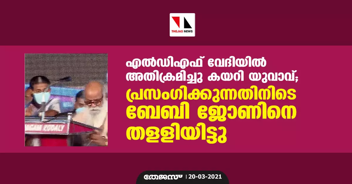 എല്ഡിഎഫ് വേദിയില് അതിക്രമിച്ചു കയറി യുവാവ്; പ്രസംഗിക്കുന്നതിനിടെ ബേബി ജോണിനെ തളളിയിട്ടു