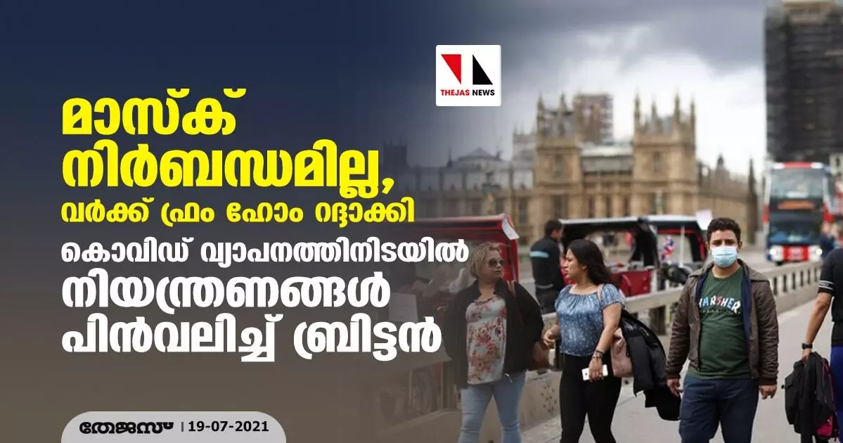 മാസ്ക് നിര്ബന്ധമില്ല, വര്ക്ക് ഫ്രം ഹോം റദ്ദാക്കി; കൊവിഡ് വ്യാപനത്തിനിടയില് നിയന്ത്രണങ്ങള് പിന്വലിച്ച് ബ്രിട്ടന്