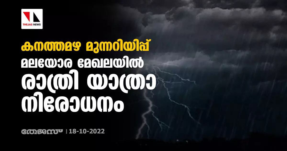 കനത്തമഴ മുന്നറിയിപ്പ്: മലയോര മേഖലയില് രാത്രി യാത്രാ നിരോധനം
