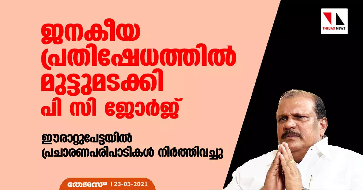 ജനകീയപ്രതിഷേധത്തില് മുട്ടുമടക്കി പി സി ജോര്ജ്; ഈരാറ്റുപേട്ടയില് പ്രചാരണ പരിപാടികള് നിര്ത്തിവച്ചു