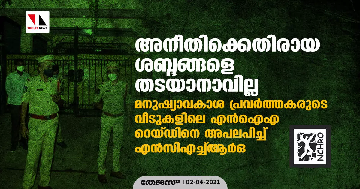 അനീതിക്കെതിരായ ശബ്ദങ്ങളെ തടയാനാവില്ല; മനുഷ്യാവകാശപ്രവര്ത്തകരുടെ വീടുകളിലെ എന്ഐഎ റെയ്ഡിനെ അപലപിച്ച് എന്സിഎച്ച്ആര്ഒ
