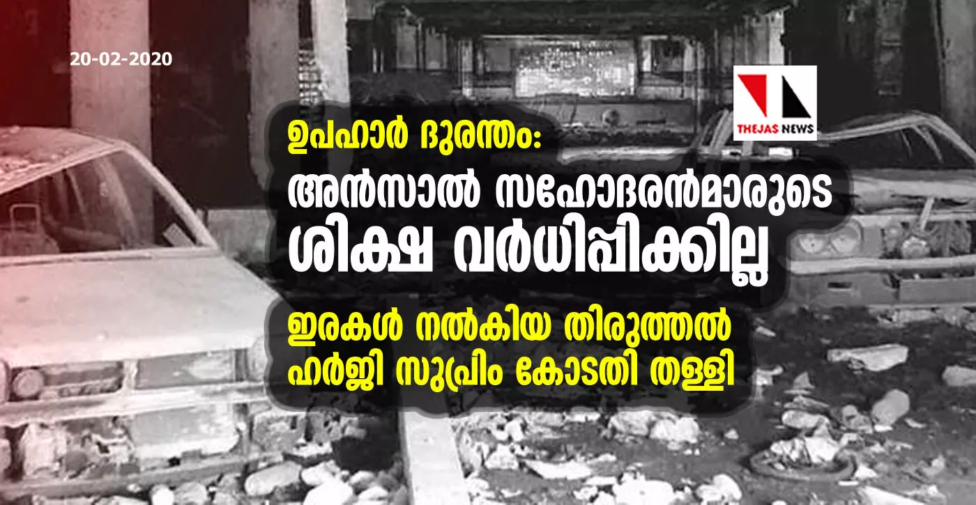 ഉപഹാര് ദുരന്തം: അന്സല് സഹോദരന്മാരുടെ ശിക്ഷ വര്ധിപ്പിക്കില്ല; ഇരകള് നല്കിയ തിരുത്തല് ഹര്ജി സുപ്രിം കോടതി തള്ളി