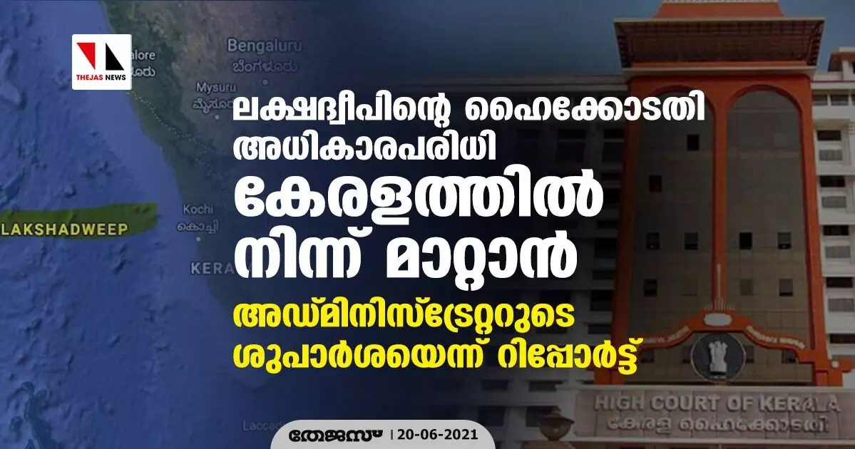 ലക്ഷദ്വീപിന്റെ ഹൈക്കോടതി അധികാരപരിധി കേരളത്തിൽ നിന്ന് മാറ്റാൻ അഡ്മിനിസ്ട്രേറ്ററുടെ ശുപാർശയെന്ന് റിപ്പോർട്ട്