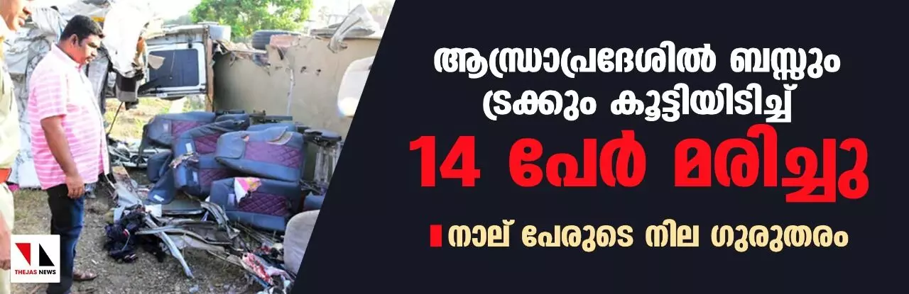 ആന്ധ്രാപ്രദേശില് ബസ്സും ട്രക്കും കൂട്ടിയിടിച്ച് 14 പേര് മരിച്ചു; നാല് പേരുടെ നില ഗുരുതരം