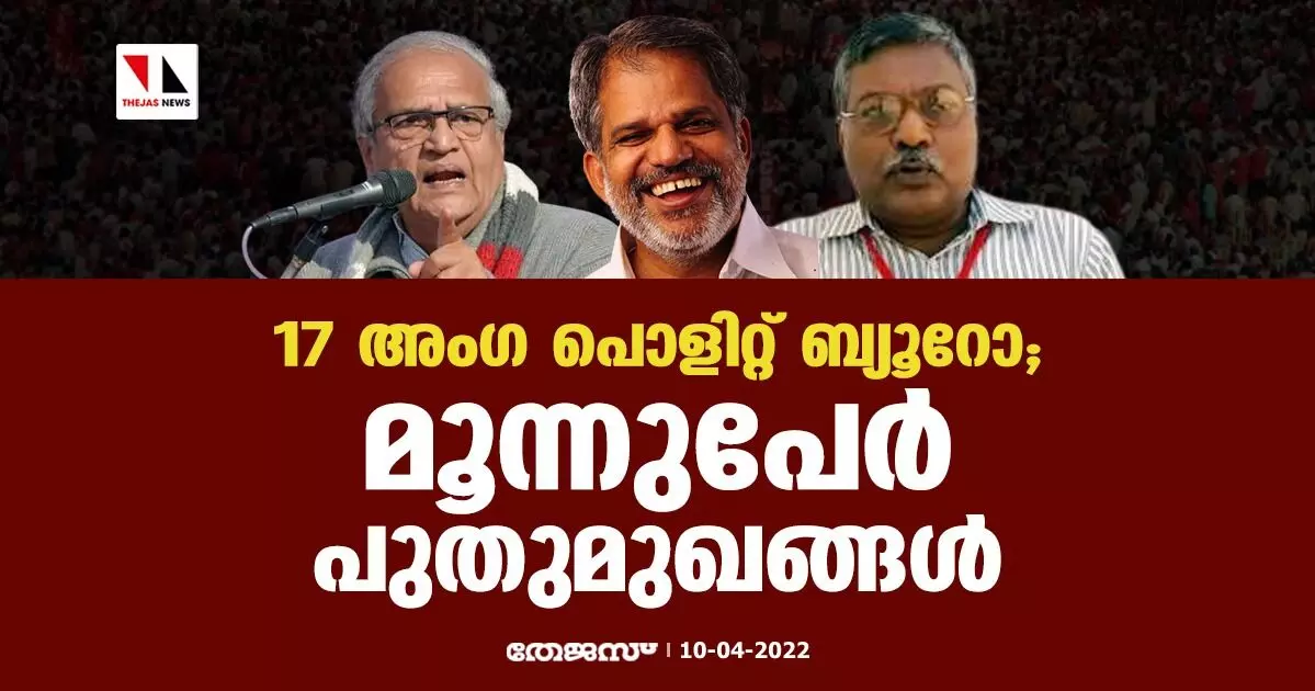 17 അംഗ പൊളിറ്റ് ബ്യൂറോ; മൂന്നുപേർ പുതുമുഖങ്ങൾ