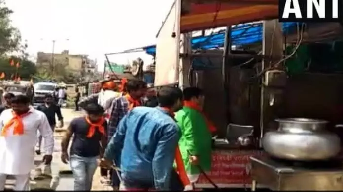ഞായറാഴ്ച നവരാത്രി ആഘോഷത്തോടനുബന്ധിച്ചാണ് ഹിന്ദുസേനാ പ്രവര്ത്തകര് ചിക്കന് സ്റ്റാളുകള് ഉള്പ്പെടെയുള്ള മാംസ വ്യാപാര സ്ഥാപനങ്ങള് ബലമായി അടപ്പിച്ചത്. മാംസ വ്യാപാരിയെ ഭീഷണിപ്പെടുത്തി ഇവര് കട അടപ്പിക്കുകയായിരുന്നു. ഹിന്ദു സേനയുടെ 40 ഓളം പ്രവര്ത്തകരാണ് ഇറച്ചിക്കട അടപ്പിക്കാന് എത്തിയത്. കടയടച്ചില്ലെങ്കില് ഇതിന്റെ പ്രത്യാഘാതം അനുഭവിക്കേണ്ടിവരുമെന്നും ആഘോഷം കഴിയുന്നതുവരെ കട തുറക്കരുതെന്നും സംഘം കടയുടമുകളെ ഭീഷണിപ്പെടുത്തിയിരുന്നു.