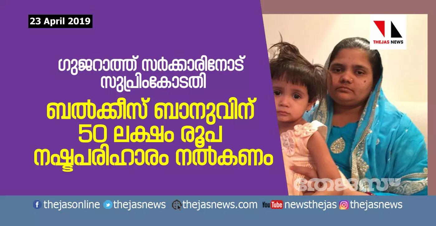 ഗുജറാത്ത് സര്ക്കാരിനോട് സുപ്രിംകോടതി; ബല്ക്കീസ് ബാനുവിന് 50 ലക്ഷം രൂപ നഷ്ടപരിഹാരം നല്കണം