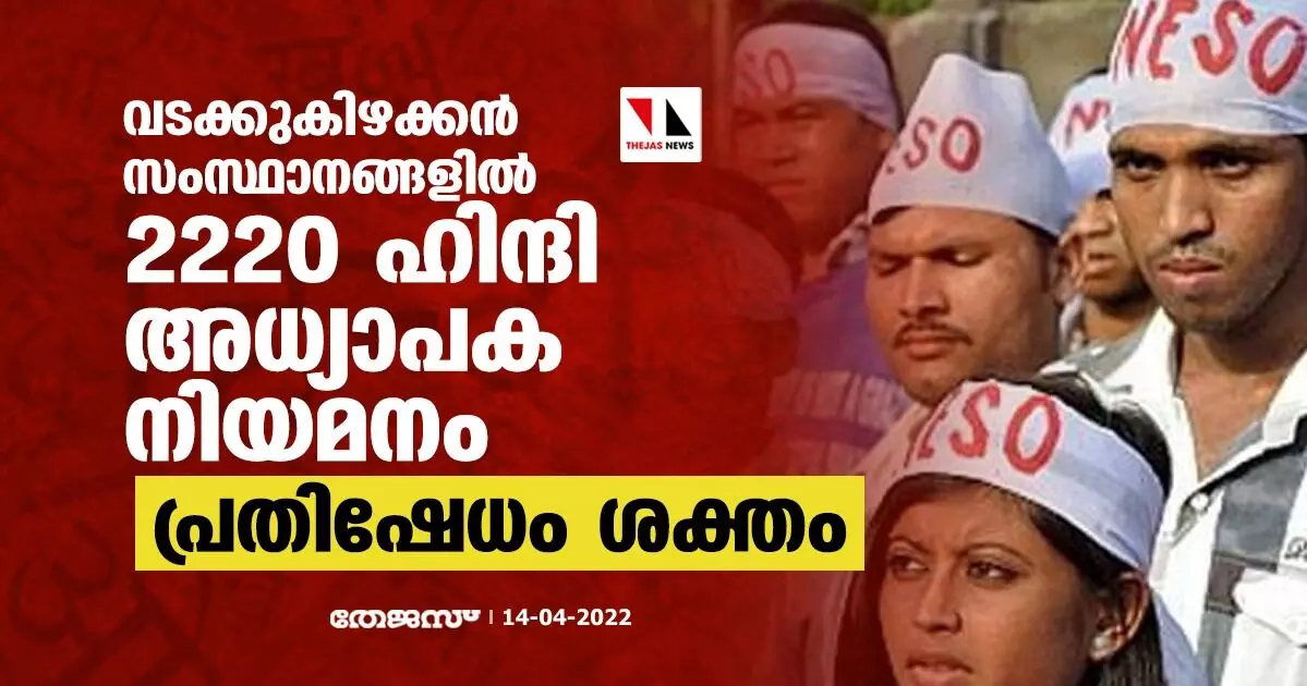 വടക്കുകിഴക്കന് സംസ്ഥാനങ്ങളില് 2220 ഹിന്ദി അധ്യാപക നിയമനം; പ്രതിഷേധം ശക്തം