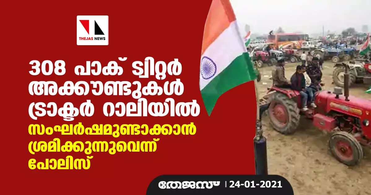 308 പാക് ട്വിറ്റര് അക്കൗണ്ടുകള് ട്രാക്ടര് റാലിയില് സംഘര്ഷമുണ്ടാക്കാന് ശ്രമിക്കുന്നുവെന്ന് പോലിസ്