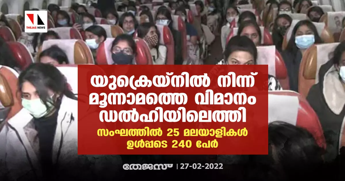 യുക്രെയ്നില് നിന്ന് മൂന്നാമത്തെ വിമാനം ഡല്ഹിയിലെത്തി; സംഘത്തില് 25 മലയാളികള് ഉള്പ്പടെ 240 പേര്