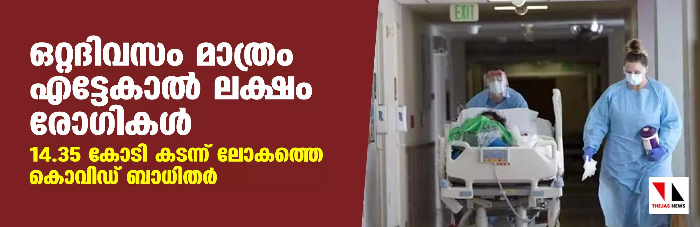 ഒറ്റദിവസം മാത്രം എട്ടേകാല് ലക്ഷം രോഗികള്; 14.35 കോടി കടന്ന് ലോകത്തെ കൊവിഡ് ബാധിതര്