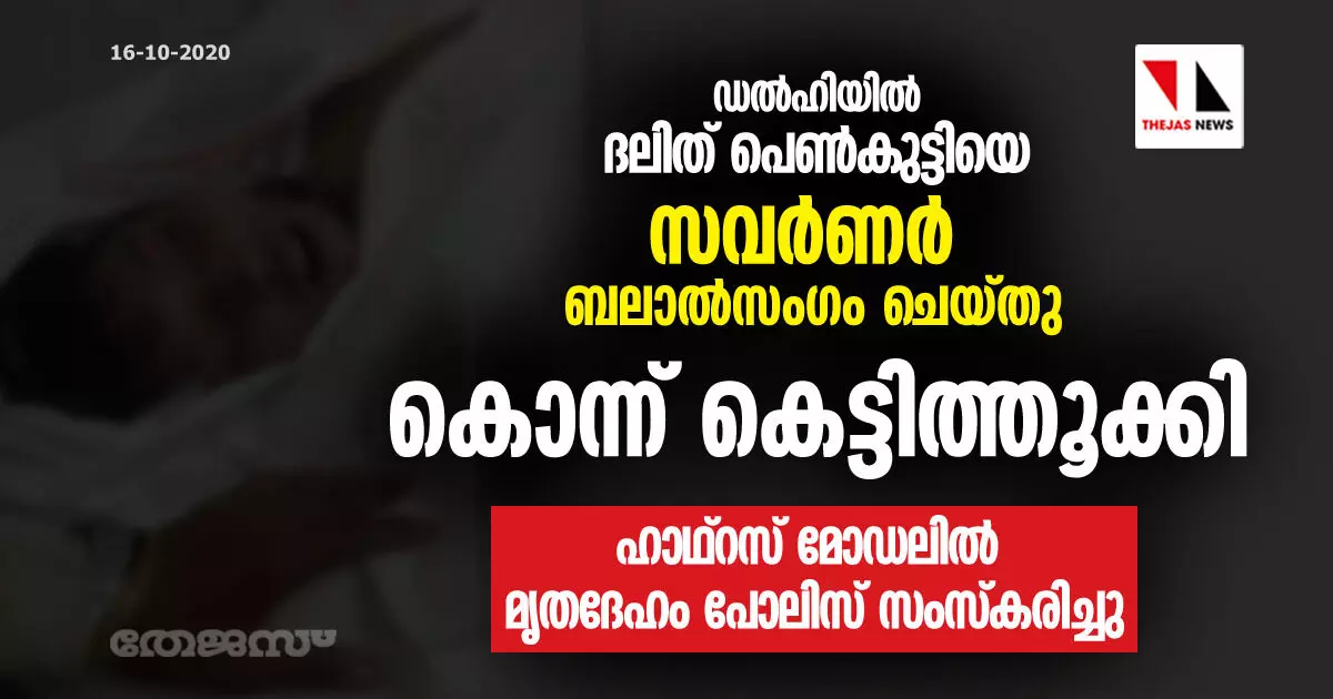 ഡൽഹിയിൽ ദലിത് പെൺകുട്ടിയെ സവർണർ ബലാൽസംഗം ചെയ്തു കൊന്ന് കെട്ടിത്തൂക്കി